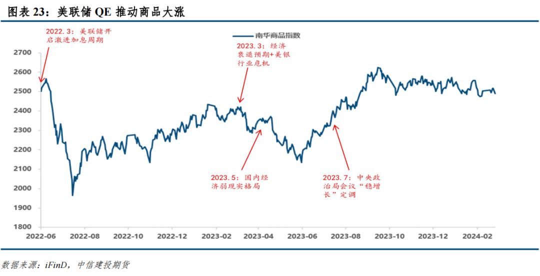 (6)2022年6月后:美联储加息引发全球流动性收紧,带动商品指数大幅下跌,2023年6月开始震荡回升。