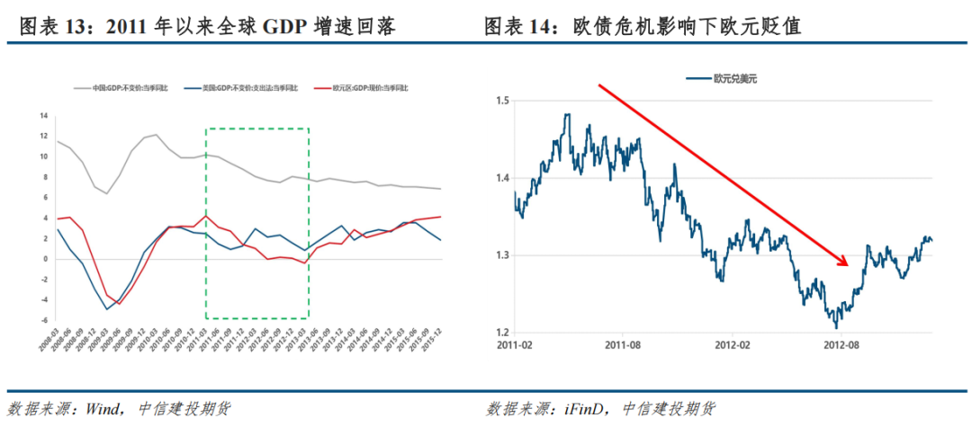 海外方面,债务危机风险加剧,欧元区GDP一度负增长。2011年5月美国债务达到14.29万亿美元的法定上限,8月标普下调美债评级引发市场恐慌。