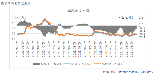 能繁母猪持续去化,市场对今年供需改善预期较强,远月看涨情绪升温,推动远月合约走强。不过清明节后,终端需求走弱,白条走货不畅,屠宰企业亏损加剧,压价按需采购为主,标肥价差的缩窄,也是二育入场趋于谨慎。虽然市场普遍对后市供需改善存向好预期,但需求支撑不足的现状,使猪价短期或承压回调,主力2409合约等待回调逢低做多,建议区间17500-19500元/吨。