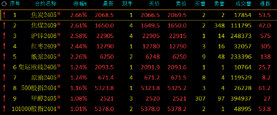 早盘收盘,国内期货主力合约涨跌不一,焦煤、焦炭、沪锌、红枣、纸浆涨超2%,SC原油、集运指数(欧线)、甲醇涨超1%。跌幅方面,碳酸锂跌超2%,玻璃、生猪、20号胶(NR)、丁二烯橡胶(BR)、豆粕、橡胶、菜粕跌超1%。