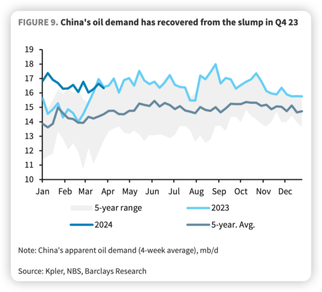 EIA的月度数据显示,美国的需求强劲,我们对中国的估计显示,在工业活动出现稳定迹象的情况下,石油需求从23年四季度相对疲软的情况中复苏。