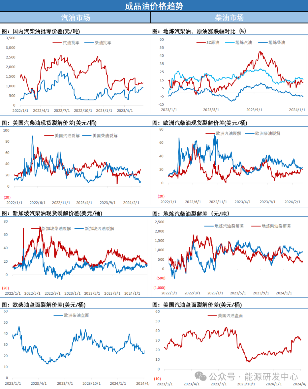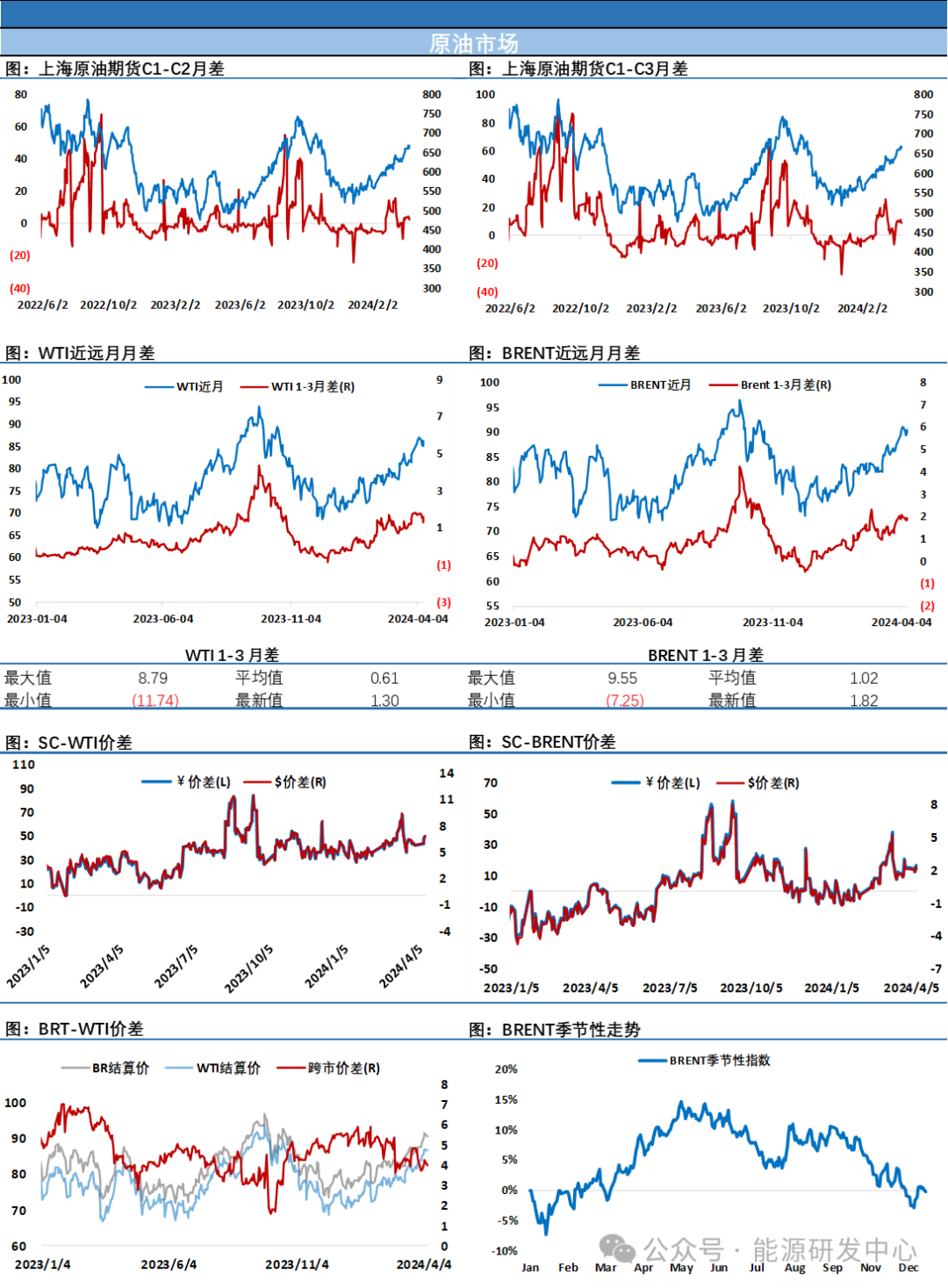欧佩克公布了4月月报,报告称 3月欧佩克参考篮子(ORB)价格环比上涨2.99美元,达到平均84.22美元/桶,涨幅3.7%。近月ICE布伦特/NYMEX WTI价差进一步收窄85美分,平均为4.26美元/桶。石油期货价格的市场结构加强,并保持现货升水,因为基金经理对石油越来越看涨。欧佩克方面一如既往的对需求预期乐观,认为尽管存在一些下行风险,但2024年全球经济增长仍有进一步上行潜力。在不确定因素持续存在的情况下,夏季石油需求前景“强劲”,虽然欧佩克表达了乐观展望,但油价对此反应平淡,