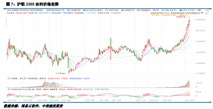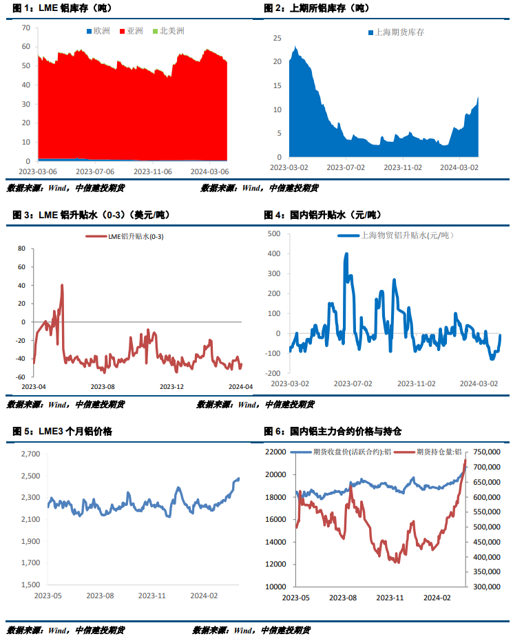 美国3月通胀数据持续回升,市场下修美联储降息预期。美英宣布对俄罗斯金属制裁,制裁会导致后续更多的俄铝流入中国市场,国内供应压力增加,利空沪铝。海外可交割货源减少,利多伦铝。原料端,山西铝土矿复产不及预期,在有色板块持续上涨的背景下,资金选择做多氧化铝进行补涨,目前氧化铝价格走势受沪铝影响更为明显。现货端上周交投有所改善,贴水略有收窄。但高铝价向终端传导依然不畅,铝棒库存持续累增。考虑到5、6月供应端仍有增量释放,铝价继续上行高度有限。
