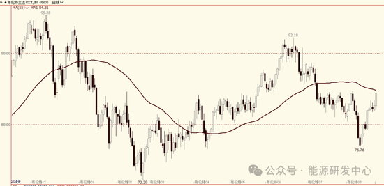 油价走出了一根让市场“猝不及防”的大阳线,让这个V型二边对称起来,这让不少投资者感到非常意外,周一原油市场本身并没有重要事件出现,在这之前油价连续几个交易日走出冲高回落行情,油价维持在一个比较窄的震荡区间波动,就在市场普遍认为油价将延续这样强势调整时,油价突发发力上攻,WTI原油近月合约一个月来首次收于每桶80美元上方,报80.33美元/桶,日内上涨1.88美元,涨幅2.40%。SC原油也到达615.8元/桶的高位。油价大涨同时原油市场月差结构也同步大幅走强,这意味着油价上行还是有较扎实的基础,市场情绪进一步好转。