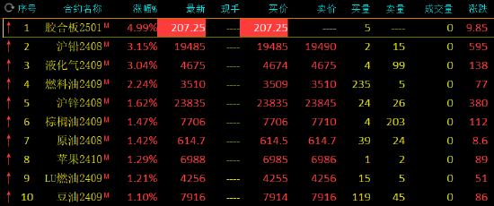 午盘收盘,国内期货主力合约涨多跌少。液化气、沪铅涨超3%,燃料油涨超2%,沪锌、棕榈油、苹果、低硫燃料油、SC原油涨超1%;跌幅方面,纯碱、纸浆、焦煤、烧碱、苯乙烯跌超1%。