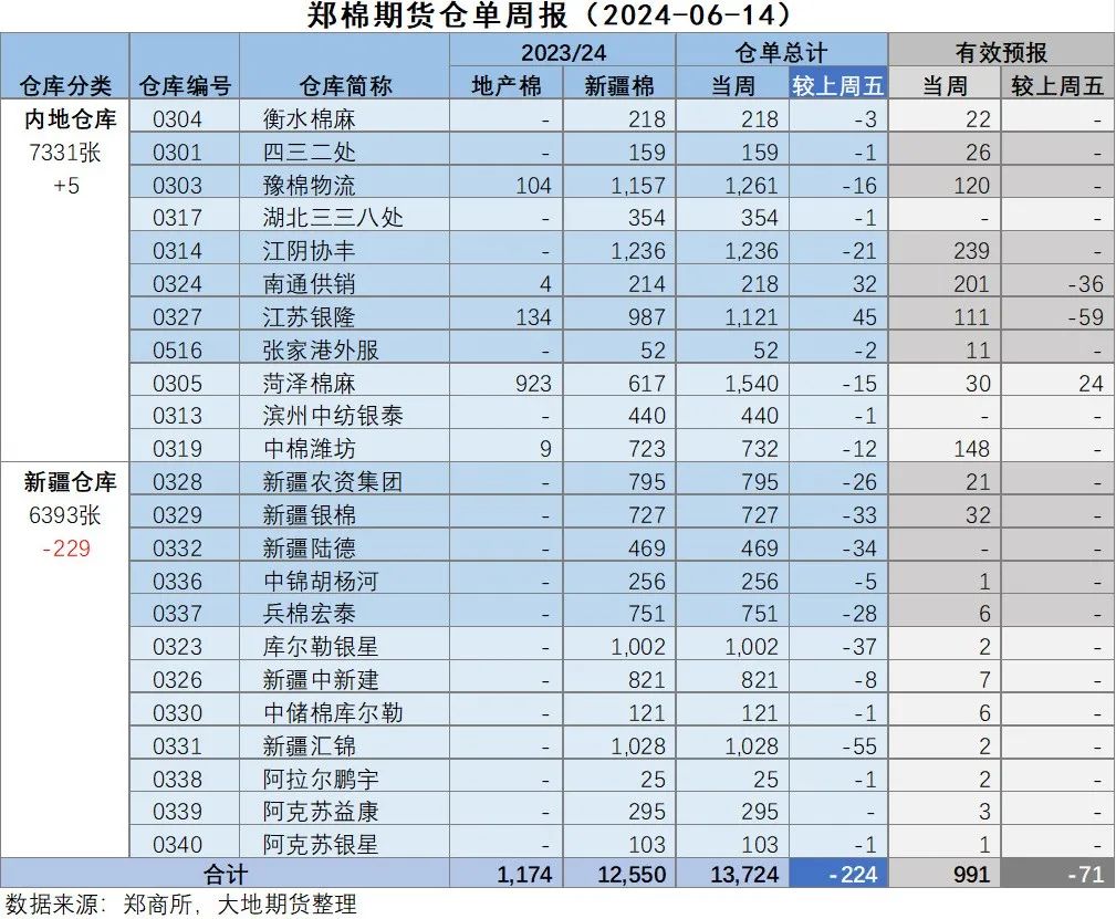 数据来源:中国棉花网,中国棉花信息网,大地期货研究院郑棉仓单减少,有效预报量略减少