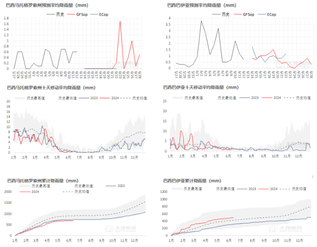 数据来源:巴西CONAB,大地期货研究院巴西天气正常,降水不多