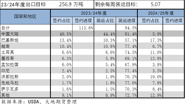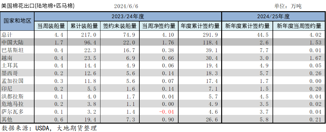 美棉出口:越南及中国开始大量签约24/25年度新棉