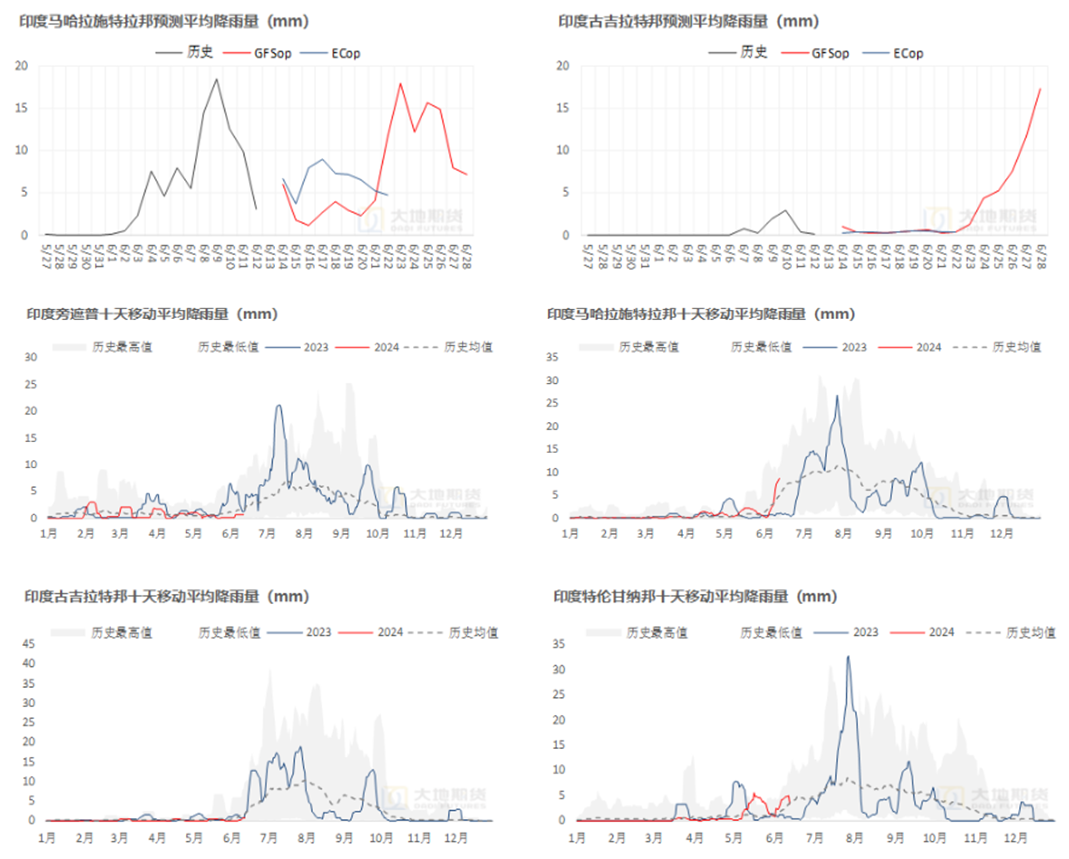 数据来源:TTEB,大地期货研究院印度天气:西南季风已抵达古邦南部