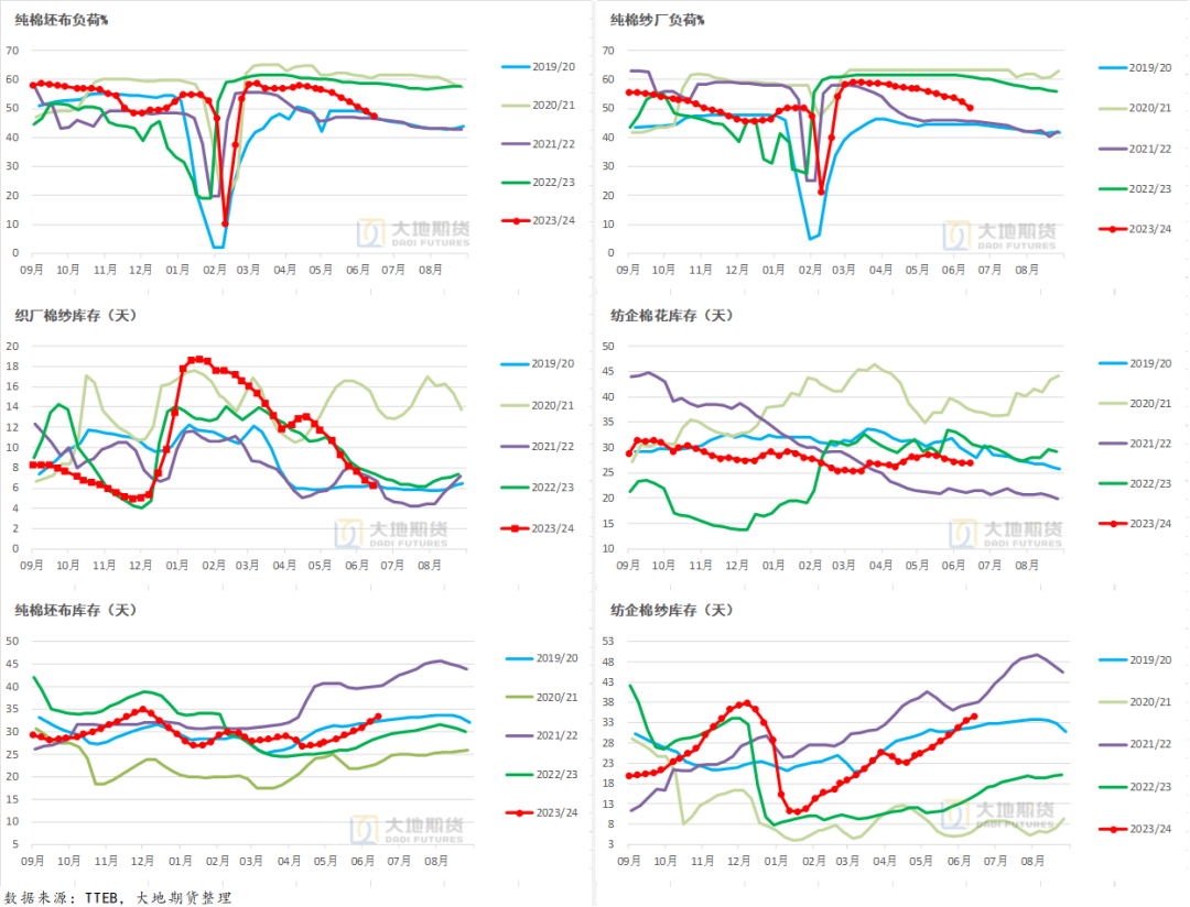 数据来源:TTEB,大地期货研究院织厂开机率继续下滑