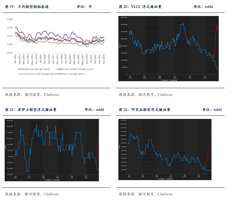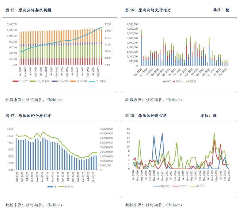 从原油海运供需的角度来看,目前OPEC+减产或将延续对原油贸易的扰动和影响,OPEC和EIA均上调全球油品需求数据,后续还需关注旺季需求对原油海运贸易的拉动。反观供应端,船队规模的低速增长或将加剧船队供应紧张问题,还需关注红海时间对海运贸易的影响时间和程度。