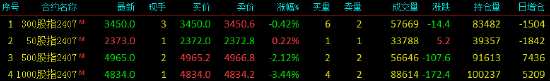 2024年6月24日,股指期货涨跌不一,沪深300股指期货(IF)主力合约跌0.42%,上证50股指期货(IH)主力合约涨0.22%,中证500股指期货(IC)主力合约跌2.12%,中证1000股指期货(IM)主力合约跌3.44%。