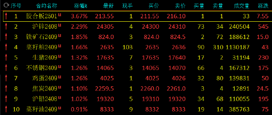 早盘收盘,国内期货主力合约涨跌不一,沪锌涨超2%,铁矿石、菜粕、生猪、鸡蛋、不锈钢、沪铅、焦炭涨超1%。跌幅方面,丁二烯橡胶跌超1%。