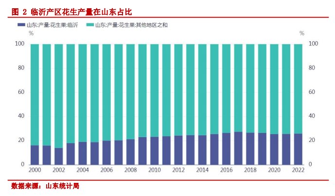 临沂是山东花生产业的重要地带,也是山东花生主产区,其中的莒南地区是山东花生重要的集散地,其价格具有地域代表性(莒南花生价格指数),并且聚集了金胜粮油、玉皇粮油、绿地食品等中型压榨企业;临沂南部的临沭地区,是山东唯一的麦茬花生种植地区。近年来临沂地区的花生果产量在70-80万吨,占山东总产量的26%左右,因此临沂花生在整个山东乃至全国都具有举足轻重的地位。