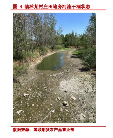 临沂地势半山区半平原,灌溉条件较差。据走访反馈,当地河流沟渠灌溉和水井灌溉两种方式皆有,能浇上水的地块前期已经浇过两次水。由于高温干旱时间过长,目前河流干涸,水井水位也很低,抽不出水,所有地块彻底无水可浇。