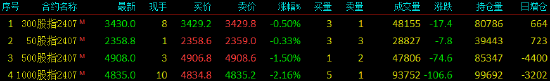 2024年6月27日,股指期货震荡下行,沪深300股指期货(IF)主力合约跌0.50%,上证50股指期货(IH)主力合约跌0.33%,中证500股指期货(IC)主力合约跌1.50%,中证1000股指期货(IM)主力合约跌2.16%。