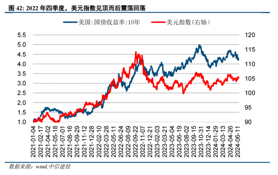 2022年美元指数由强转弱,全球流动性实质性转松,铜价开始企稳回升。