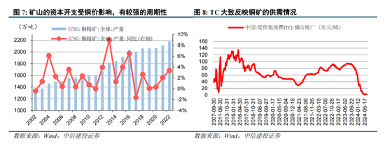 供应端:矿山的产能周期导致供应短期缺乏弹性,精炼铜供给瓶颈在于铜精矿产能而非精炼产能,供给本质是由铜精矿定价。