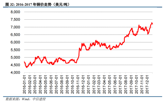 2016-2007年LME铜年度涨幅分别为22%、21%,这一轮铜价修复的幅度较之前(2009-2010)有所减弱。