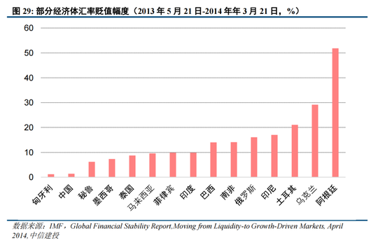 Taper恐慌过后,美元风险溢价快速上涨因素弱化,美元指数开始震荡回落;但美联储持续加息,新兴经济体投资仍受压制。
