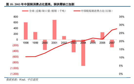 2003年,全球经济同步复苏,中国需求加持下,铜市场供需平衡关系转变,铜价加速上行。