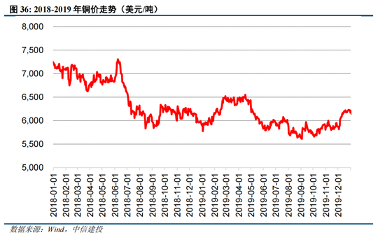 2018-2019铜价年度涨跌幅分别为-11%,0%。