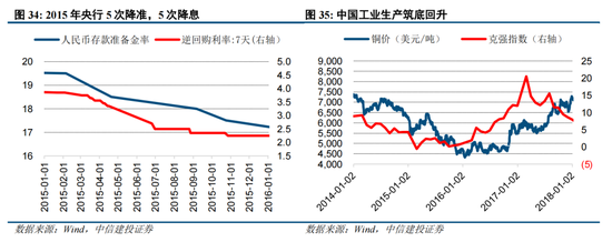 2015年央行的5次降准和5次降息,以及大量抵押补充贷款(PSL)向房地产的投放,推动了中国工业部门活动的反弹。伴随中国房地产市场回暖,铜价由2016 年1 月的4325 美元/吨逐步恢复至2017 年12 月的7219 美元/吨。