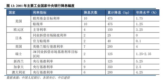 2001年,美联储11次降息,其中8次降息50个基本点,3次降息25个基本点,降息总幅度达475个基本点,联邦基金利率和贴现率分别收于1.75%和1.25%。