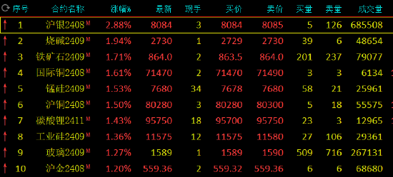 早盘开盘,国内期货主力合约涨多跌少,沪银涨近3%,国际铜涨近2%,铁矿沪铜烧碱玻璃、沪金、焦炭涨超1%。跌幅方面,LU燃油、菜粕跌近1%。