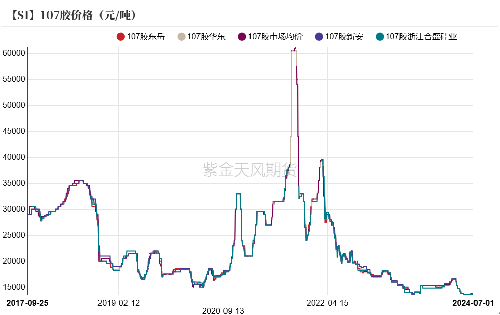 截至6月28日,DMC价格较6月21日环比持平于13600元/吨、华东生胶环比持平于14300元/吨,107胶环比持平于13800元/吨,硅油环比持平于14900元/吨。