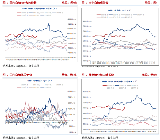 在6月18日利空情绪集中释放背景下,郑糖期货开始逐步反弹,现货相对稳定,引导基差高位收敛。截至7月5日,南宁现货价-期货主力结算价价差为219,回落至中等水平。