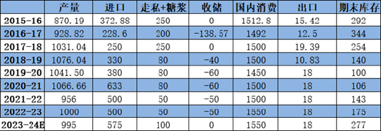 国内食糖供需平衡表预估