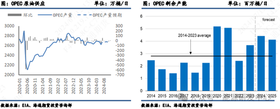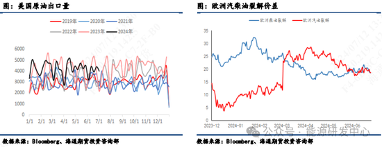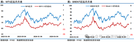 我们观察到在CME-OPEC WATCH上,OPEC+本次会议的预期绝大多数偏向OPEC+延长减产,且越临近会议延长检查预期值越高。所以本次会议的延长减产是非常符合市场预期的,也会提前消化这一预期。在公布决议后2024年10月至2025年9月期间可能会逐步退出每日220万桶的自愿减产的声明,反而将油价形成了稍微偏空的影响,国际油价在会议后有明显下挫。