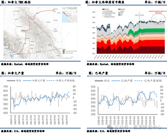 圭亚那和巴西的增产基本来自海上项目,FPSO 装置的投产使两国产量从2023年下半年以来显著增长,巴西更是在9月达到历史新高493万桶/日。目前截至6月底,圭亚那产量为61万桶/日,巴西为471万桶/日。虽然上半年巴西产量不及预期,但下半年市场对巴西供应仍有增量的预期。