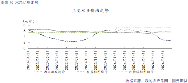 截止7月16日,西瓜均价2.6元/公斤,较上周环比下降0.4元/公斤,以西瓜为代表的夏季时令水果,对比上市初期,价格已有较大降幅,当前价格在低位相对稳定,处于量大价低的状态。相比较而言,苹果处于果季后期,货架期已经不长,剩余货源中,好货供给紧张,整体性价比不高,贸易商按需补货,苹果消费平淡。