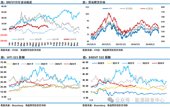 原油市场高频数据显示,在7月这一轮油价8美元的回落过程,非常强势的月差结构有所回落,不过整体仍维持在年内高位,包括周五大跌之际月差仍较为坚挺,这也显示现阶段原油市场明显处于旺季供应偏紧的阶段。另外成品油裂解差在近期也出现了反弹,需求旺季阶段石油市场供需结构较为健康,总体来看原油市场自身供需层面在现阶段对油价还是有明显的利多。但是过一段时间宏观层面对投资者情绪及预期的冲击盖过了供需利多的作用,包括西方国家经济衰退担忧的摇摆及美国总统大选的变化均给市场带来了不确定性,本周前期最为强势抗跌的贵金属板块也开始出现大幅回落,资金对于其持仓部分的调整带来的冲击之下,原油投资者的观点也跟随出现摇摆进而影响到油价的反复,这也是当前油价波动的典型特征。总体评估当前原油市场,我们认为供需层面大概率会在接下来一段时间不会给油价太大压力,原油的超跌反弹需求在8月份仍有机会得到释放,当前位置继续追空油价的操作相对性价比不高。