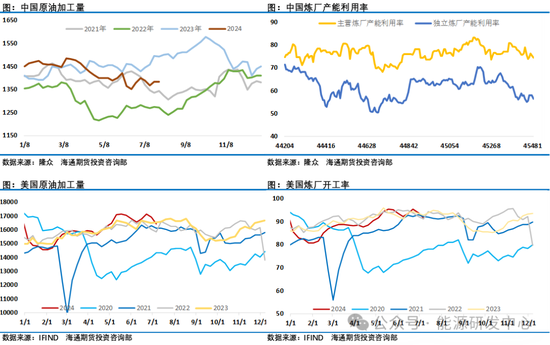 07月19日公布的最新一期EIA周度数据显示当周美国除却战略储备的商业原油库存减少374.1万桶至4.36亿桶,降幅0.85%。库欣库存减少170.8万桶。汽油库存减少557.2万桶,预期减少39.1万桶;精炼油库存减少275.3万桶,预期增加24.9万桶。美国至7月12日当周除却战略储备的商业原油库存为2024年2月9日当周以来最低。战略石油储备库存为2022年12月23日当周以来最高。美国至7月12日当周EIA汽油库存增幅录得2024年1月19日当周以来最大。EIA报告:07月19日当周美国原油出口增加22.2万桶/日至418.6万桶/日。美国至7月19日当周除却战略储备的商业原油库存为2024年2月2日当周以来最低;EIA战略石油储备库存为2022年12月23日当周以来最高;EIA汽油库存降幅录得2024年3月8日当周以来最大;EIA汽油库存降幅录得2024年3月8日当周以来最大。成品油消费端来看,成品油表需环比明显回升,各类主要油品表需走强。出行方面,主要油品汽油和航煤均有不同程度的回升;工业油品方面,馏分油表需和丙烷&丙烯表需也均有回升。整体上这是一份对油价非常友好的报告。相对于美国旺季需求表现尚可,国内原油市场表现仍较为平淡,高频数据显示国内原油加工量基本平稳较上一期变化不大,虽然国内成品油裂解差受益于原油回落出现反弹,但终端需求仍是低迷,成品油价格仍在回落,业内信心仍处于低位。不过整体来看整体消费旺季下原油市场整体供需压力不大。