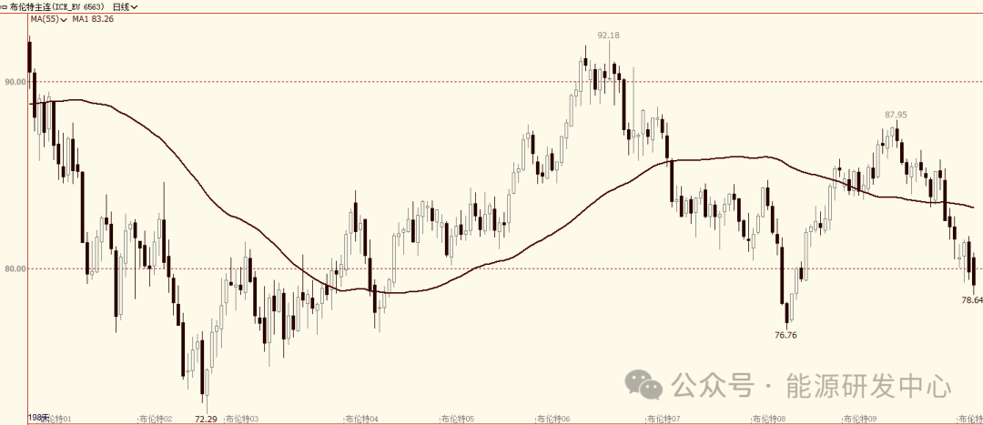 周一油价高开低走,再次刷新7月回调低点,这让多头士气再次受挫,周末中东地缘风险升温刺激油价较周五收盘高开,但从油价全天高开低走表现可以看出投资者仍然受困于大宗商品市场整体风险偏好处于低位,士气低迷的氛围下,资金选择非常谨慎,欧洲时段开始到夜盘油价再次走出日内高点回落2美元的表现,面对超跌反弹的修复需求,投资者更担心后市潜在的利空。再叠加大宗商品市场整体情绪低落,信心处于低位,油价的回调也在多空博弈中不断升级。