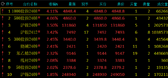 早盘收盘,国内期货主力合约多数上涨,沪镍、沪银涨超3%,苯乙烯、烧碱涨超2%,沪锡、碳酸锂、玻璃涨近2%。跌幅方面,集运欧线跌超4%,菜油跌近1%。