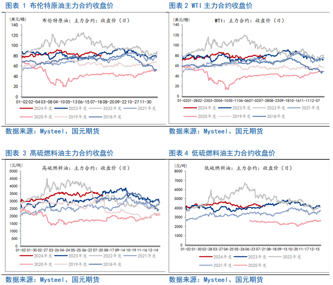 回顾7月份全球原油与高低硫燃料油市场,整体呈现冲高回落后大幅下跌态势。7月初多重利多比较集中,中东地区冲突升级,北美飓风逼近美湾,共同推动国际油价强势上涨。但7月中旬出现了宏观层面的利空,美国公布的6月经济数据偏弱,就业数据不及预期,CPI数据超预期回落,美债收益率下行,油价回落。7月中下旬,特朗普遭遇枪击,拜登退选,宏观向下驱动;而地缘政治冲突反复,但市场缺没有再度交易,前期利多基本出尽,油价在月末一路下行。