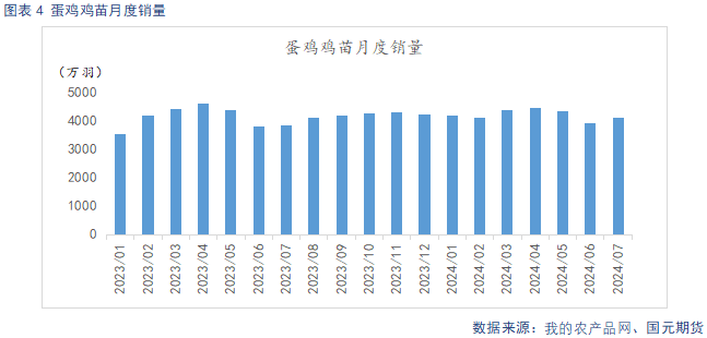8月新开产蛋鸡多为4月前后补栏鸡苗,4月鸡苗销量较3月环比增长1.56%,加之需求旺季预期下,蛋价上行,产区淘汰积极性下降,预计8月产蛋鸡存栏延续环比增加趋势。不过8月气温仍然较高,产蛋率预计维持低位,实际产能增幅有限。
