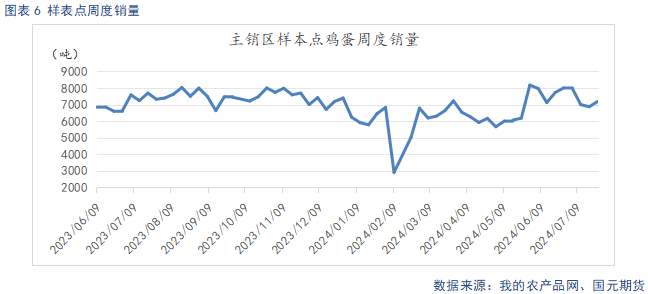 截止7月26日,钢联统计主销区样本点月度销量2.9万吨,较上月环比减少0.18万吨。7月初,蛋价偏低,终端需求较好,销区走量速度较快,随着蛋价逐步走高,终端对高价蛋的承接力愈显不足,销量逐周下降。进入8月后,下游需求有逐步回暖预期,预计8月销量将有所提升。