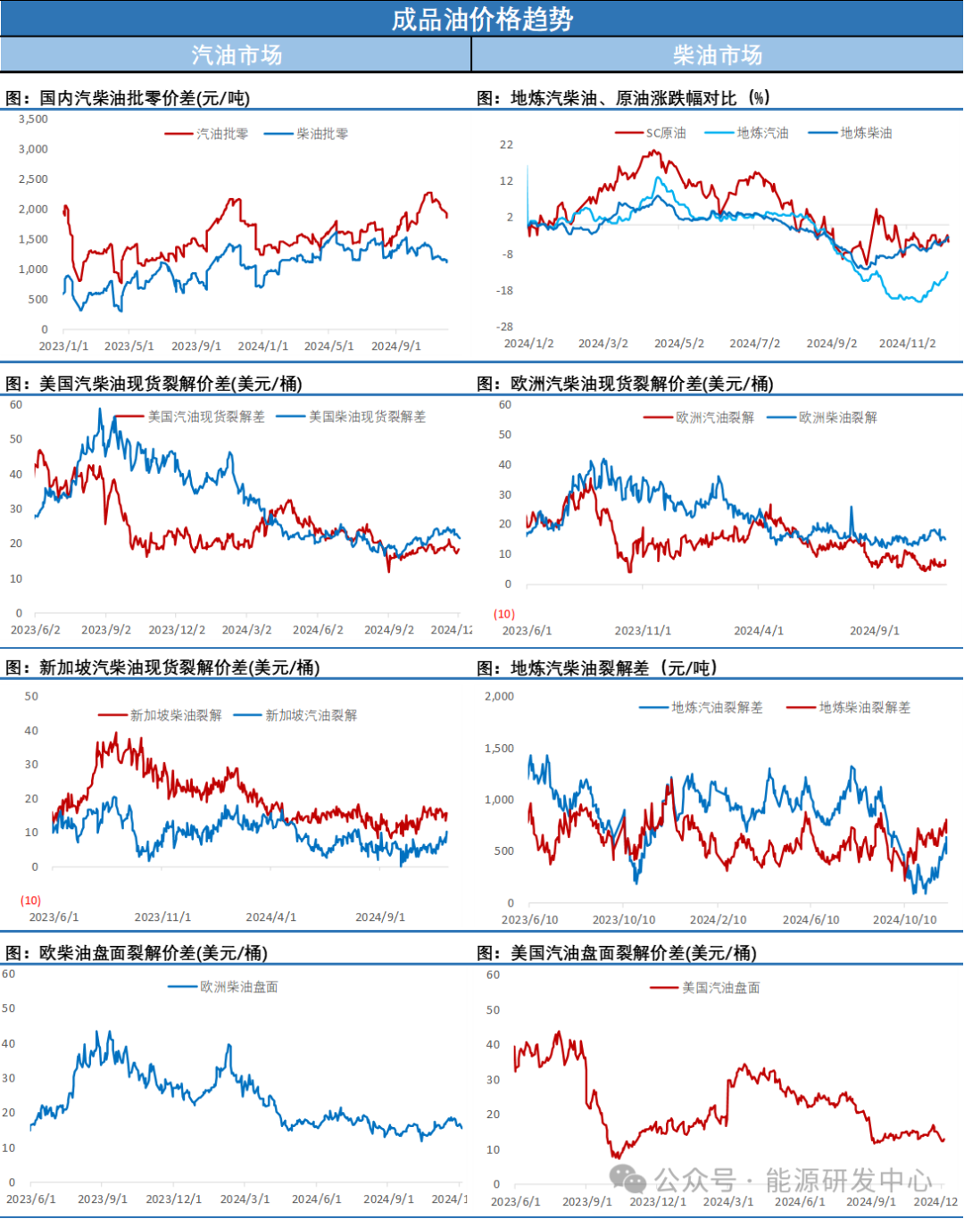 根据分析,OPEC+似乎并没有过度担心非OPEC+供应以及通过价格战带来市场调整的必要性。购买非 OPEC+ 石油桶的国家可能会面临阻力,因为利润率将在 2025 年持续下降,从而导致这些国家的关闭量增加。这是未来值得关注的一个重要路标,因为欧佩克+国家在将原油远离市场的同时,正在向市场输送产品,这给炼油厂的利润带来压力。到 2025年,这种情况可能会持续甚至加速。尽管有信号表明逐步取消减产已推迟至 2026 年 9 月,但可以认为这是既定的,因为这在很大程度上取决于即将上任的特朗普政府对美国产量增长以及对伊朗和委内瑞拉的潜在新制裁的言论。以及对加拿大和墨西哥的潜在关税。