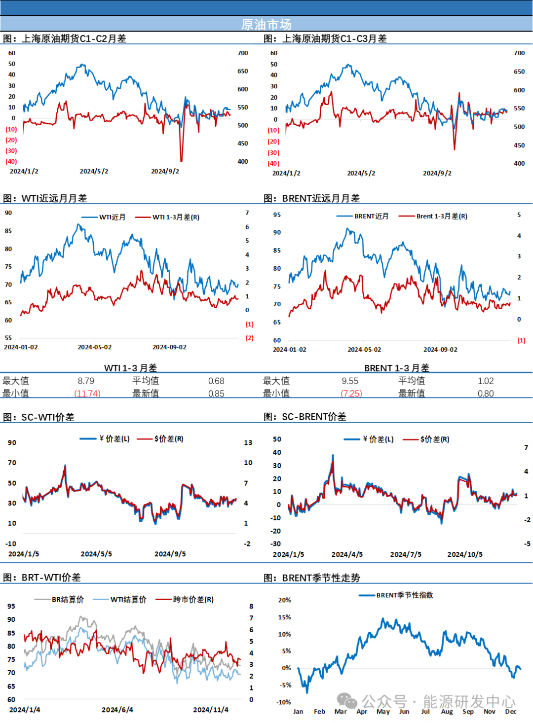 油价本周连续二日收涨,但从油价运行节奏可以看出在圣诞假期前夕资金无心恋战,2024年原油市场的供需层面变化以及基本被市场计价,年末这段时间高频指标走平同样显示原油市场处于平衡市阶段。油市场正处于缺乏有效驱动的阶段,很难摆脱当前的区间震荡节奏,油市或在等待特朗普上任后再权衡最终的方向选择,近期维持短线思路,注意控制好风险,谨慎参与。