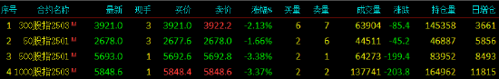 2024年12月31日,股指期货震荡下行,深300股指期货(IF)主力合约跌2.13%,上证50股指期货(IH)主力合约跌1.66%,中证500股指期货(IC)主力合约跌3.38%,中证1000股指期货(IM)主力合约跌3.37%。