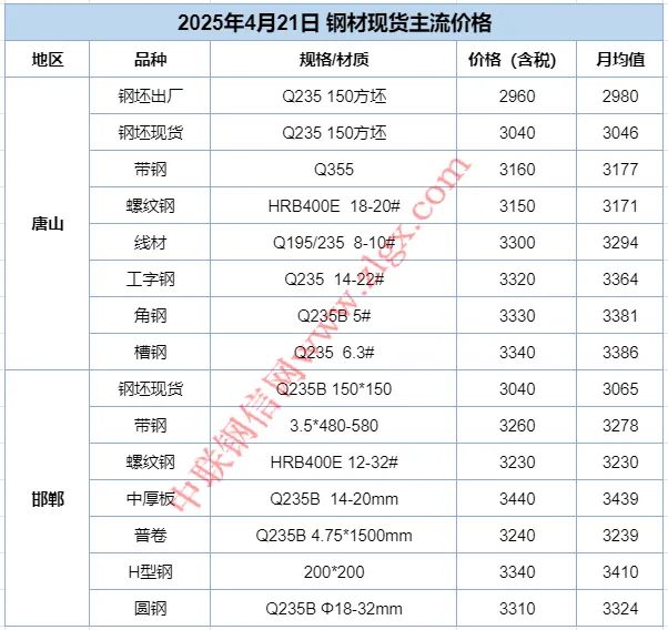 昨日钢材期货市场主要品种主力全部上涨,其中螺纹涨0.81%、热卷涨0.69%,铁矿、焦煤、焦炭涨超1%。现货方面螺纹、热卷现货价格多数上涨,线材现货价格涨跌均现,其中,螺纹现货价格涨幅在0-30元/吨之间。4月21日唐山迁安普方坯资源出厂含税上调20,报2960。