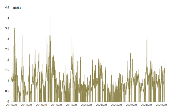 图表7:Wind隐含波动率构建的比值指标序列未通过波动率的平稳性检验
