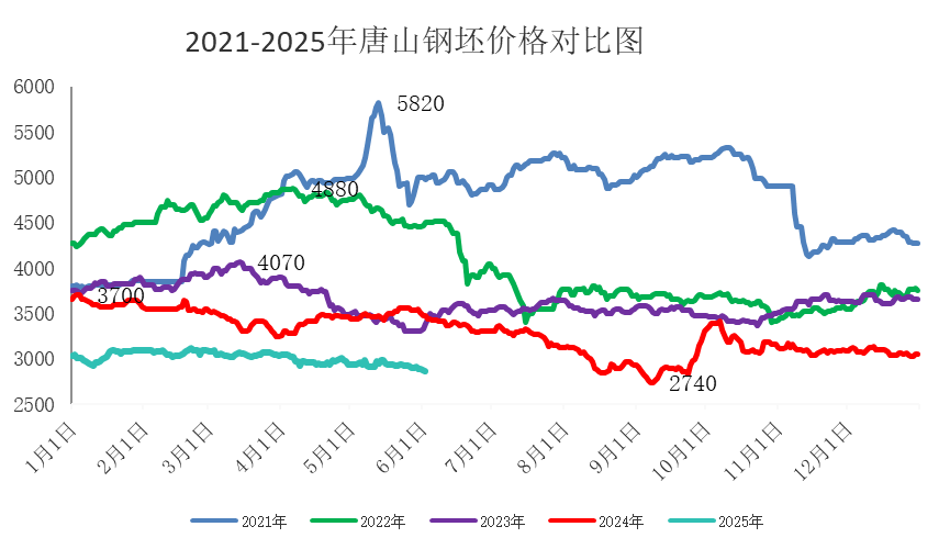 5月份国内钢坯市场呈现小幅偏弱调整态势,整体成交表现偏弱。上半月,受需求疲软及预期转弱影响,钢坯价格持续回落。但随着中美关税下调协议达成,市场情绪显著改善,金融市场的普涨带动钢坯价格快速反弹。不过,这一利好对黑色大宗商品的影响主要集中于情绪层面,缺乏实质性支撑。进入下半月,随着宏观利好逐步消化,市场进入政策真空期,钢市走势回归基本面驱动逻辑。在 “强现货、弱预期” 的复杂格局下,市场参与者操作愈发谨慎,钢坯期现基差持续收窄。临近月末,现货升水格局显现,虽在一定程度上为市价构筑底部支撑,但市场整体承压明显,弱调态势占据主导。截止月底发稿时,唐山报2890-2900元/吨较4月底累降50元/吨,江阴报2950元/吨较4月底累降50元/吨。