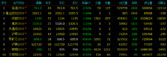 2025年6月10日,早盘开盘,国内期货主力合约涨跌不一。铸造铝合金涨超5%,沪银、苯乙烯、SC原油涨超1%。跌幅方面,焦煤、集运欧线跌超2%,纯碱焦炭跌超1%。
