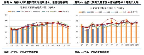 MPOB月报前,棕榈油走势已在马棕继续累库的预期下有所承压。虽然因出口明显好于预期,马棕5月并未出现超预期累库,199万吨的月末库存还比主流机构预估的201万吨略低些,但因产量好于预期且同比仍有增长,引发市场对未来产量及库存预估的上修,仍令MPOB月报后棕榈油走势出现承压。